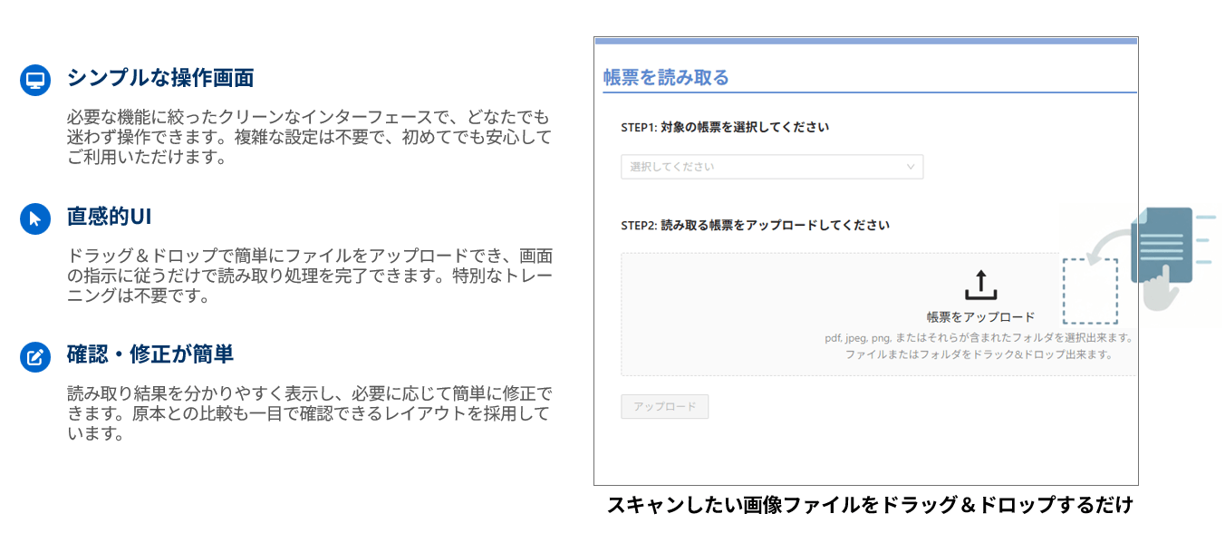 スキャンした注文書(画像/PDF)をドラッグ&ドロップするだけの簡単運用。